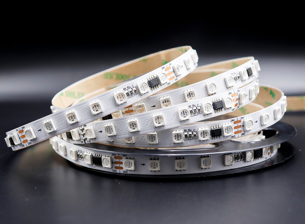 1、控制原理:一個(gè)IC控制7顆LED組成一個(gè)回路(一組),控制器通過(guò)控制IC對(duì)FPCB里面的電路進(jìn)行控制,從而控制LED燈條變化不同的效果;如閃爍,追逐,跳變,順時(shí)針跑馬,逆時(shí)針跑馬,單色跑馬,變色跑馬,單顆追逐從頭到尾,流水,模擬閃電等;也可以根據(jù)客戶(hù)需要,自行編寫(xiě),編寫(xiě)出所有想要的效果。