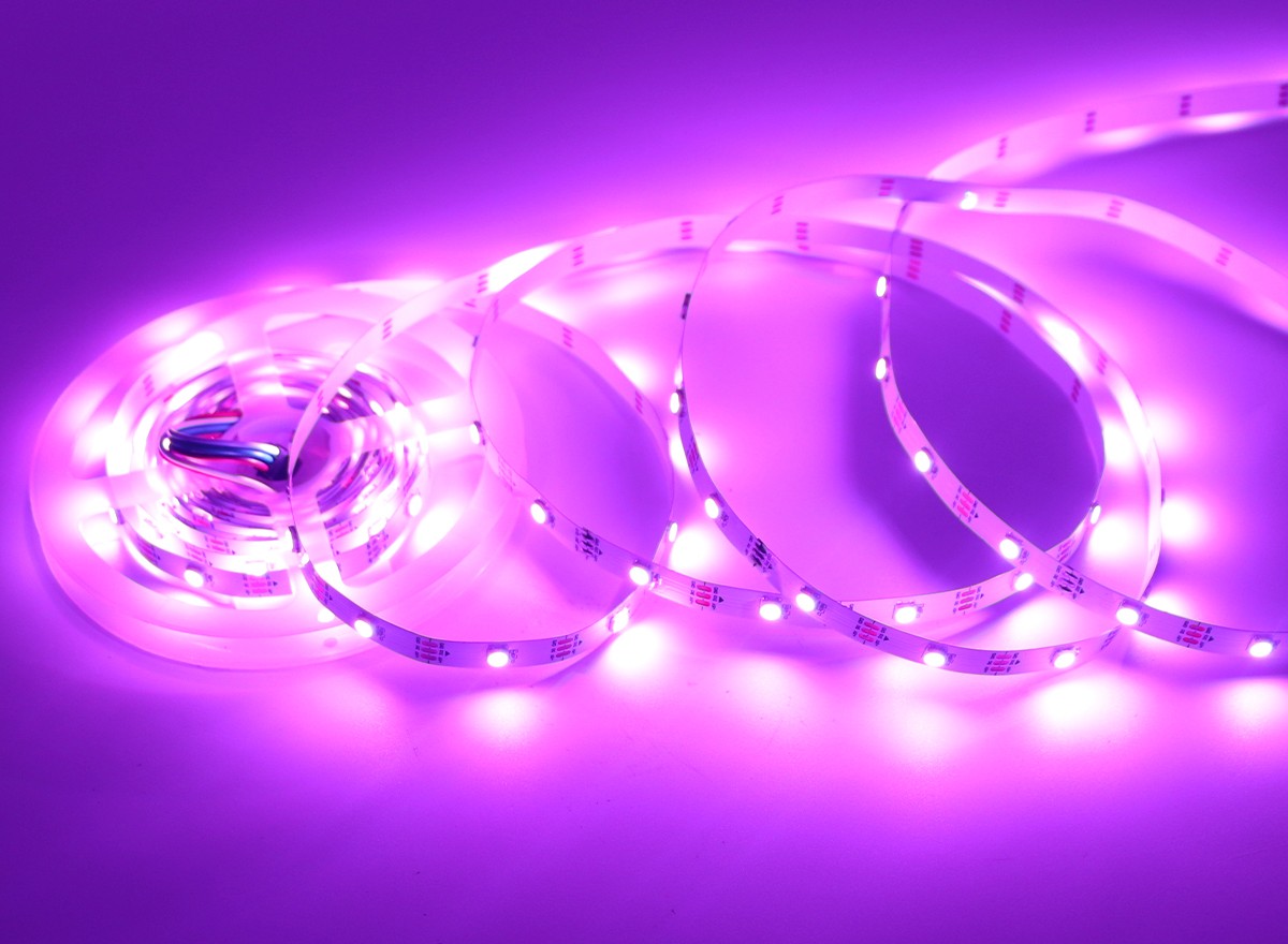 2.LED燈帶供電電壓為5V,過(guò)長(zhǎng)使用(超過(guò)5米)壓降上升,導(dǎo)致尾部供電電壓不足,造成LED亮度不均勻,建議使用分控器供電。